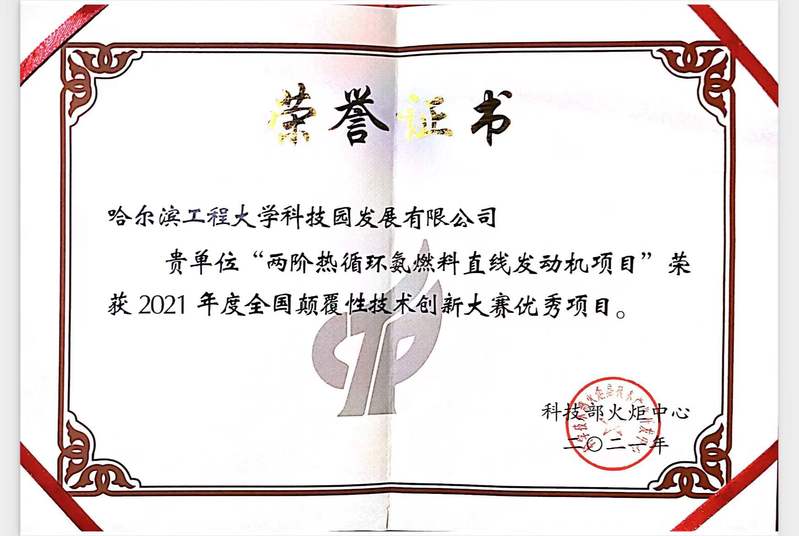 2021年12月28-30日,由科技部主办的首届全国颠覆性技术创新大赛领域赛在青岛成功举办。哈尔滨工程大学科技园发展公司推荐的“两阶热循环氨燃料直线发动机项目”从近3000个参赛项目中脱颖而出,经过多轮评议进入领域赛,成为黑龙江省仅有的2项入围项目之一,最终获得“优秀项目”荣誉。