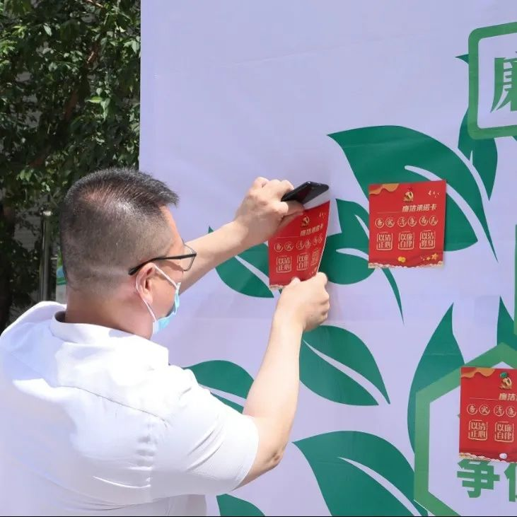 随后,党员代表面向写满廉洁承诺的廉洁树,向党作出廉洁承诺。“牢记使命”“忠于职守”...一张张廉洁承诺卡,承载了党员干部们坚决筑牢拒腐防变思想防线,不断提高廉政意识,提升自身党性修养的理想信念。