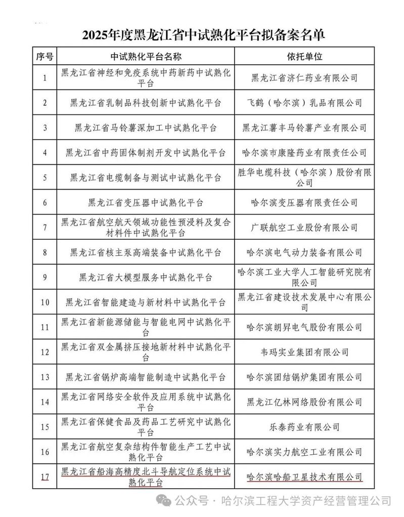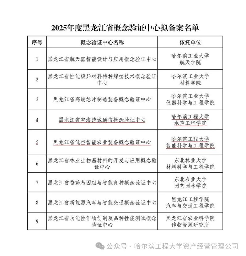 近日,由国家大学科技园组织申报的三个省级平台均成功获批备案。其中,“黑龙江省空海跨域通信概念验证中心”依托水声工程学院建设,“黑龙江省低空智能农业装备概念验证中心”依托智能科学与工程学院建设,“黑龙江省船海高精度北斗导航定位系统中试熟化平台”依托科技孵化企业哈尔滨哈船卫星技术有限公司建设。